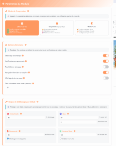 Structurez votre module en chapitres et pages pour une navigation claire. L’apprenant voit le sommaire et peut se repérer dans son avancement. La progression est visible chapitre par chapitre.